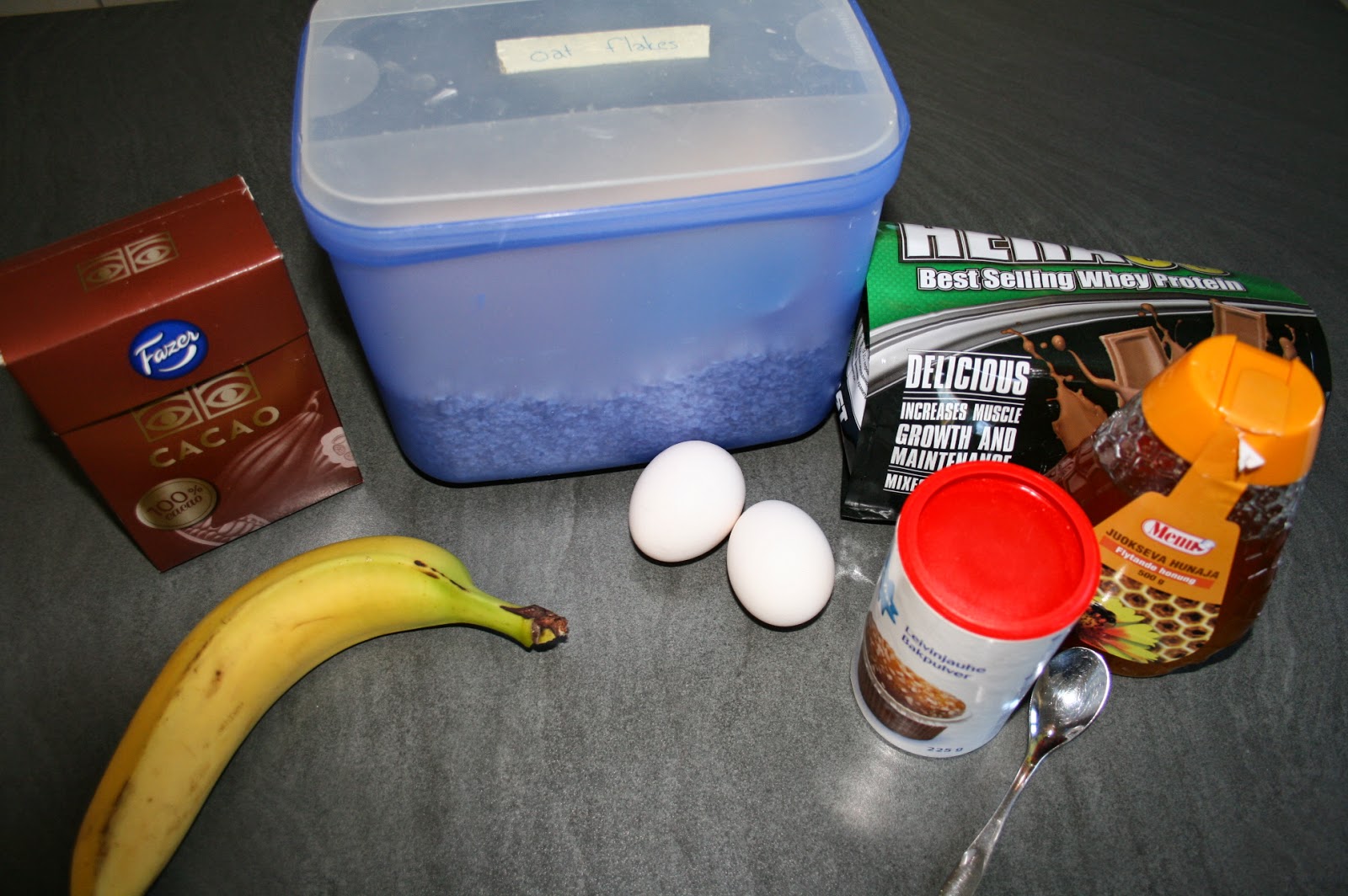 Moikka! Mitä kuuluu? Meillä alkaa koeviikko huomenna, mikä ei tosiaankaan ole ihan lemppari aikaani kuukaudesta - vaikka siitäkin löytyy kyllä hyvät puolensa kuten mm. lyhyet päivät koulussa ja se ettei kokeita ole ripoteltu ihan joka viikolle! - , joten päätin leipoa vähän energiaa; tein proteiini mutakakun! Juu tämähän oisi ehkä parempi silloin kun sitä ylimäärästä proteiinia harkkojen jälkeen kaipaisi ja tänään on tankotanssin peruunnuttuaa vapaapäivä, mutta mitäs pienistä kun teki mieli jotain hyvää! Sain tämän ajatuksen kaveriltani joka kokkasi samaista luomusta meille reilu viikko sitten ( joka taas inspiroitui The goodmorning -blogista). Se on juuri sitä miltä kuulostaa - terveellinen mutakakku! Voisko olla mitään parempaa? Okei joo onhan tämä vähän erilainen kuin se Aito Oikea, koska tämä tehdään pannulla ja siinä ei ole sokeria eikä rasvaa - mutta siinä ei ole lainkaan sokeria tai rasvaa! Aineksien määrää voi vaihdella vähän kaapin valikoimien ja oman maun mukaan, mutta näillä ainakin onnistuu helposti!